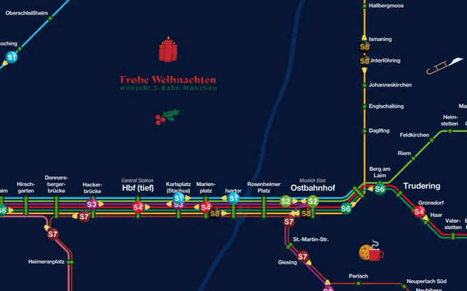 auch bei der S-Bahn München. Während der Weihnachtszeit erstrahlt die LiveMap der S-Bahn München in einem weihnachtlichen Design.